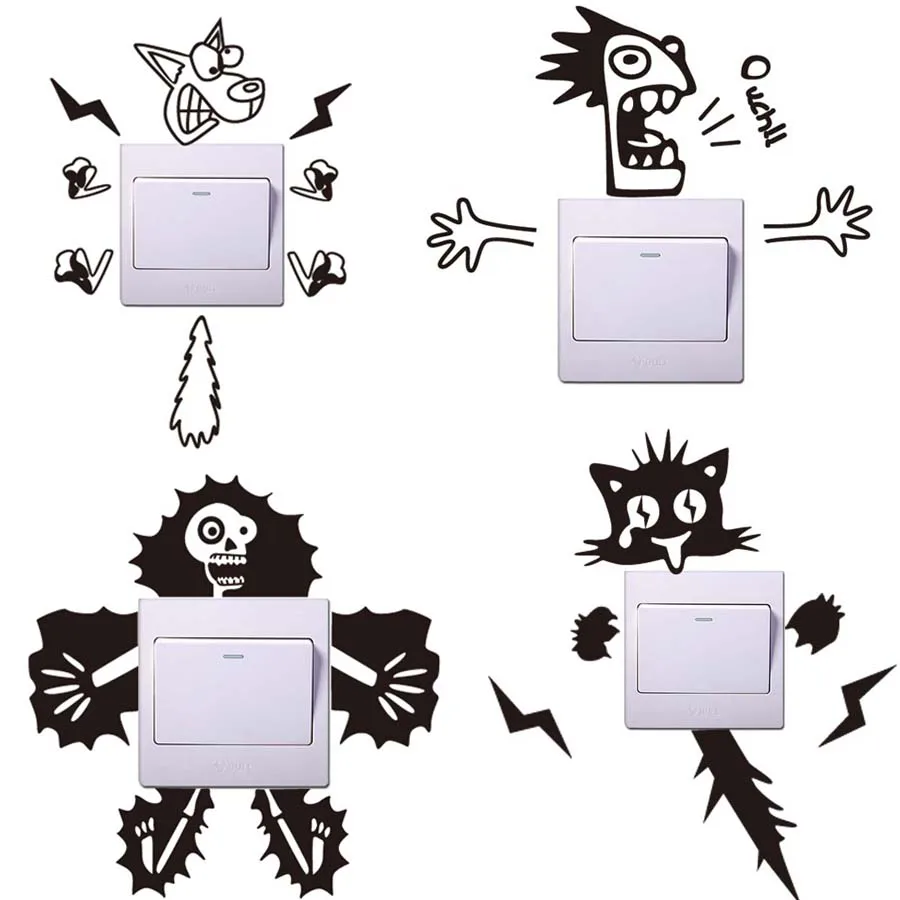 4 Styles Electrocuted Animal Cartoon Funny Decal Vinyl Switch Door Socket Sticker Bedroom Modern Wa