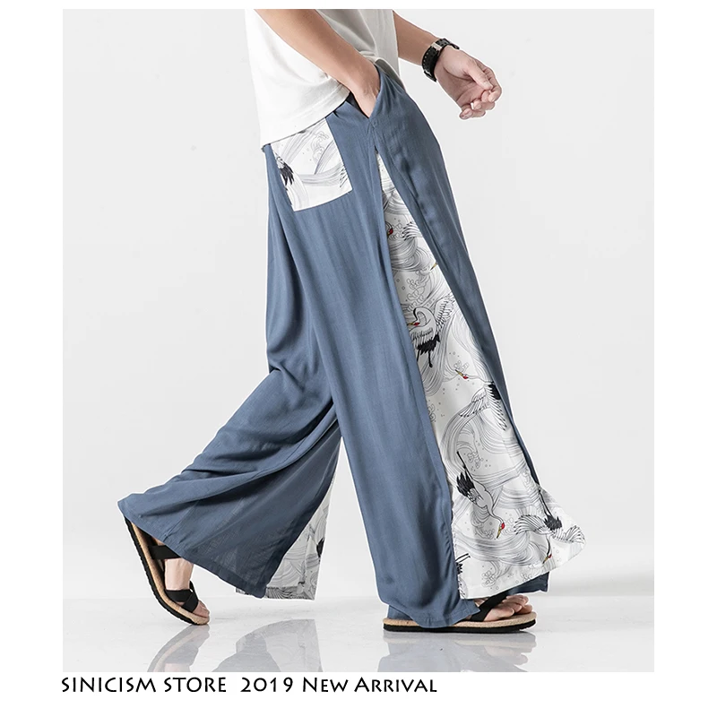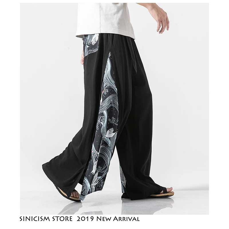Sinicism Store 2019 Japanese Wide Leg Pants Men Streetwear Casual Cotton Linen Man Sweatpants Summer Chinese Style Male Joggers